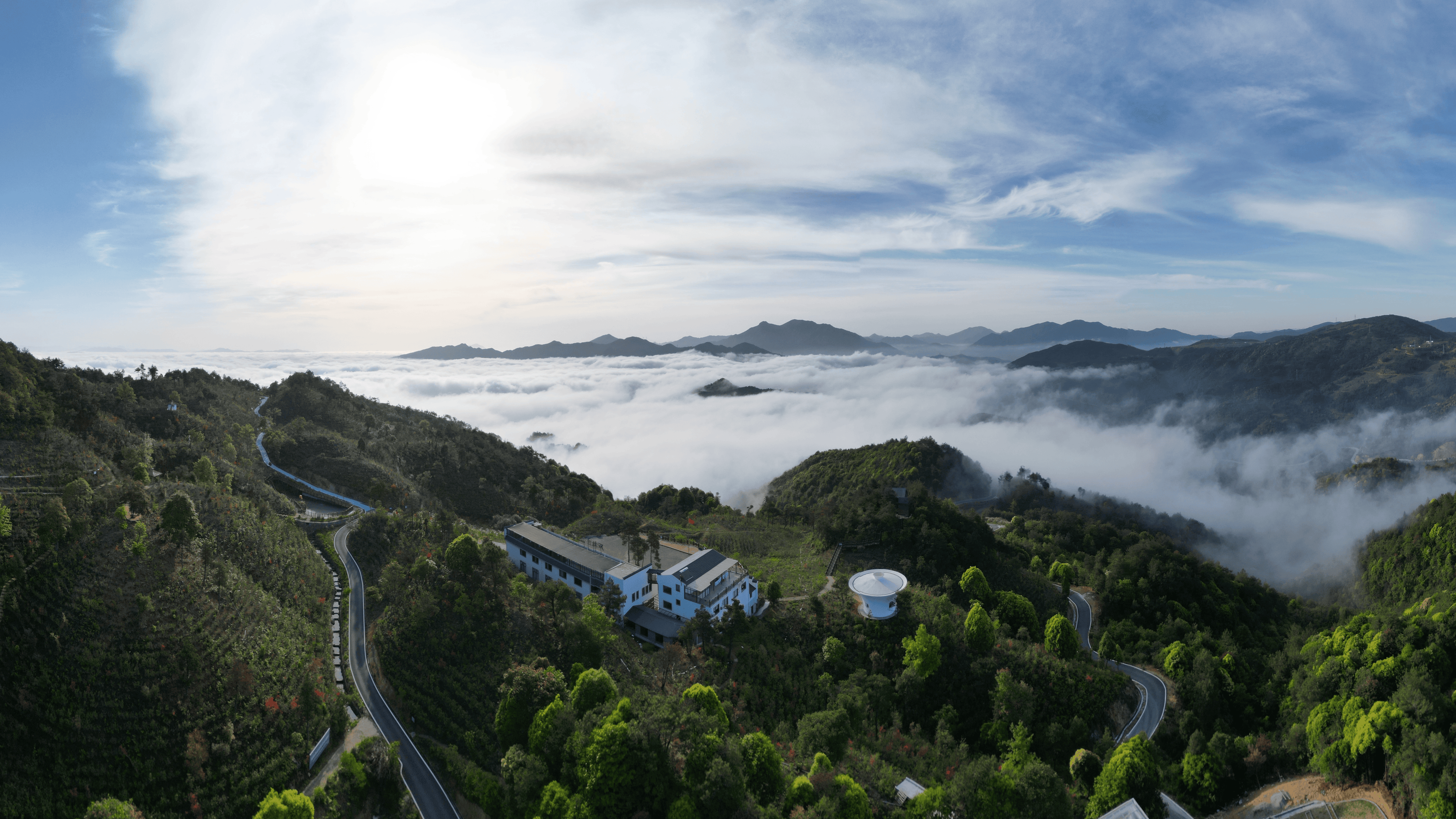 A breathtaking panorama of our tea garden, where cultivated plots merge with preserved wilderness in a self-sustaining ecosystem.